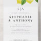 Monograms lemons citrus branch greenery wedding. Customize with your wedding details.
