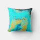 Monograms Teal Blue Golden Patterns Custom Name Throw Pillow