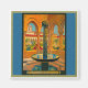 Vintage travel poster for Monreale , Palermo in Italy. Colorful Italian courtyard with an ornate fountain.