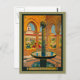 Vintage travel poster for Monreale , Palermo in Italy. Colorful Italian courtyard with an ornate fountain.