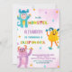 Monster Birthday Invitations pink purple