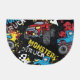 Abstract seamless Monster Car pattern on grunge shape cracked background with shabby dots and spray paint texture, ink. Childish style wheel auto repeated decor.