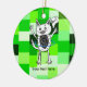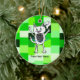 Monster having fun playing with a hoop ceramic ornament