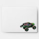 This exciting Monster Jam design features the legendary Grave Digger monster truck, instantly recognizable by fans of monster truck racing. The iconic truck is illustrated in vivid detail with its signature skull graphics, neon green flames, and oversized monster tires. The bold green and purple color scheme, combined with the rugged monster truck design, captures the thrilling energy and action of a live Monster Jam event.