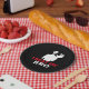 A white silhouette of a horrible zombie or monster, red text Treat me, white text Bro. black background. Funny one-of-a-kind Halloween paper plate for anyone. Customizable. You can change the image and two texts. Use the Customize button to fine tune the product to your personal needs and wishes. Have fun.