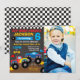 Rev up the excitement with this bold Monster Truck Birthday Invitation! Featuring two colorful monster trucks racing over dirt hills with blazing flames and checkered flag details, this design is perfect for high-energy celebrations. Easily personalize with your child’s name and event details to create a powerful invite for a monster truck, Monster Jam, or racing-themed birthday.