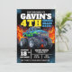 Monster Truck Cool Blue 4th Birthday Personalized Invitation