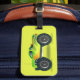 Monster truck on lime green luggage tag