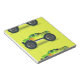 Monster truck on lime green notepad