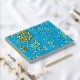 Gold Monstera leaves and foliage blue and gold foil personalized wedding guestbook.
