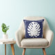 Monstera Leaf Navy Blue and White Coastal Modern Throw Pillow