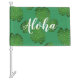 Monstera leaves - Aloha .Hawaiian greeting -text design with brush calligraphy style fonts . It comes against digitally painted tropical green leaves . It has nice summer feel . Design by Alma Wad .