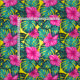 Monstera Leaves and Hibiscus, Teal and Pink on Yellow. Digital watercolor drawing. Please check out my designs for more color variations of this pattern. Thank you :)