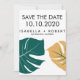 Designed to match our Monstera wedding invitations and accessories this tropical chic wedding save the date features a two trendy monstera leaves illustration in dark green and yellow.