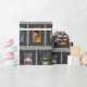 Whether you need to wrap up a scary present or just have a zombies fan on your shopping list this frightening wrapping paper is a perfect choice. It features nightmarish portraits of zombies in blue, orange, yellow, pink, beige and green in black frames set against a gray background.
