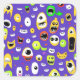 Colorfully rendered monsters with large eyes or teeth on a purple background
