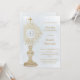 Plain white envelopes are included with paper invitations and will come to fit the invitation size you select. If you don’t need the envelopes, you may choose to not receive them by selecting the dropdown below "Envelopes" and choosing "None." If you’d like to have a design on your envelopes, you can browse all of these available envelopes to find the design that complements your Monstrance Design First Holy Communion Invitation.