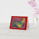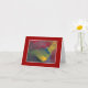 Montage of painted colors with red background. Blank inside.
