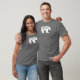 My 11 yo wore adult XL (5’7” 165#). The 8yo is small framed. She wore adult small and tied it in the back. Grandma wore adult large with long sleeve shirt underneath. Tall girl adult medium. Dark haired male adult large. Good quality dark Heather gray, Gildan brand shirt. -it was next up from basic choice and cost about $20 per shirt. Not too thick or thin. Washed and dried well, no major shrinkage. Not see-through. Can wear a bra under it fine. Screen print is just as shown and well done, front and back.