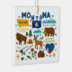 Commemorate your trip to the state of Montana with this modern keepsake Christmas ornament, featuring hand-drawn style illustrations of iconic food, animals, landmarks, landscapes, and culture. Personalize the back to mark your US adventure and create a memory you'll hang up on the tree for the Holidays year after year.
