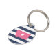 Let your furry friend show some home state pride with this cute Montana ID tag. Design features a white silhouette map of the state of Montana in pink with a white heart inside, on a preppy navy blue and white stripe background. Add your pet's name and contact information to the back in white lettering on a pink background.