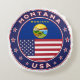 Badge of Montana with flag of Montana and flag of USA colors, rounded shape.