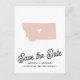Modern MONTANA State Destination wedding save the date with MONTANA State silhouette in blush pink with with heart, save the date in a contemporary font and your name and wedding date along the bottom. On the back a space for a custom message and your return address.