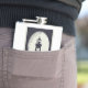 Well made flask, a little better than I had expected. Flask came in clear plastic box which gave it a nice presentation when I took it out of the zazzle packaging. Image is not printed on flask but on sticker. Don't know how this will hold up I haven't used it yet. This would make a Great gift! I plan to purchase more for friends! Cheers. I thought a little brighter than computer. Very crisp, writing wasn't