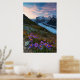 This photo features wildflowers on rocks with Monte Rosa glacier on background, Zermatt, canton of Valais, Switzerland.