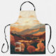 Immerse yourself in the harvest season with this stunning all-over print apron. Featuring a seamless, expansive view of the Blue Ridge Mountains at sunset, this design captures the rich amber and deep rust tones of a Montebello, Virginia autumn. The artistic landscape serves as the perfect backdrop for the charming apple butter jar graphic, celebrating the spirit of the Appalachian highlands.
