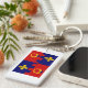 A key chain containing the unique colorful flag of Montgomery County Maryland.