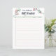Keep an overview of upcoming payments due and never be late on your bills again! Note all incoming bills on this monthly bill tracker and check them off when you pay them.