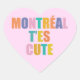 Montreal city modern typography cute pink Heart Sticker. Colorful trendy heart sticker with quote Montreal t'es cute. Typographic modern girly sticker with colors. Gift idea for women, girls, teens, friends, montrealers students, for birthdays, events. Sticker for mailings, packagings, notebook, laptops. I love montreal sticker template