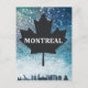 .: Montreal Quebec Silhouette with Montreal written in a bold in a maple leaf, stylized font over a teal background.