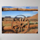 Picture of a wagon wheel in front of the scenic panorama of Monument Valley, Utah