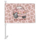 Cartoon car with pink cow pattern. Custom text.