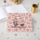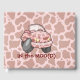 Cartoon car with pink cow pattern. Custom text.