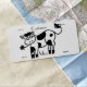 Black and white cow eating flower, to personalize by changing to your name on any background color