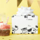 Black and white cow eating flower, to personalize by changing to your name on any background color