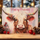 Moo-ry Christmas Watercolor Highland Cow Holiday Card