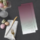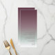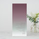 The background for the pieces in this minimalist wedding set is an eye-catching gradient of colors from dark burgundy through soft sage green to white. The wedding menu card shown here features a sleek, modern layout and contemporary sans serif font to add to it's appeal. Easily add your menu selections, initials and wedding date using the provided template. Search ID741 to see the complete set of matching products in burgundy mist or choose one of the other available gradient combinations to suit your wedding color palette.