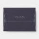 The background for all the pieces in this minimalist wedding set is an eye-catching gradient of colors from indigo through peach and palest yellow. The matching envelope shown here features a gradient interior and deep indigo exterior. Easily add your names and address using the provided template. Search ID741 to see the complete set of matching products in Indigo Sunset or choose one of the other available gradient combinations to suit your wedding color palette.