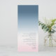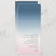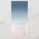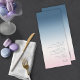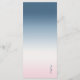 The background for the pieces in this minimalist wedding set is an eye-catching gradient of colors from prussian blue through soft pink and white. The wedding menu card shown here features a sleek, modern layout and contemporary sans serif font to add to it's appeal. Easily add your menu selections, initials and wedding date using the provided template. Search ID741 to see the complete set of matching products in Prussian Sky or choose one of the other available gradient combinations to suit your wedding color palette.