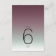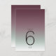 The background for all the pieces in this minimalist wedding set is an eye-catching gradient of colors from dark burgundy through soft sage green to white. The wedding table numbers card shown here features a sleek, modern layout and contemporary sans serif font to add to it's appeal. Easily add table numbers, initials and wedding date using the provided template. Search ID741 to see the complete set of matching products in burgundy mist or choose one of the other available gradient combinations to suit your wedding color palette.