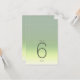 The background for all the pieces in this minimalist wedding set is an eye-catching gradient of colors from soft sage green through palest yellow to ivory. The wedding table numbers card shown here features a sleek, modern layout and contemporary sans serif font to add to it's appeal. Easily add table numbers, initials and wedding date using the provided template. Search ID741 to see the complete set of matching products in Spring Meadow or choose one of the other available gradient combinations to suit your wedding color palette.