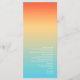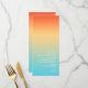 The background for the pieces in this minimalist wedding set is an eye-catching gradient of colors from tangerine orange through butter yellow to turquoise. The wedding menu card shown here features a sleek, modern layout and contemporary sans serif font to add to it's appeal. Easily add your menu selections, initials and wedding date using the provided template. Search ID741 to see the complete set of matching products in Tropical Sky or choose one of the other available gradient combinations to suit your wedding color palette.