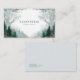 Step into a world of mist and magic with this beautifully illustrated enchanted forest business card. This design captures the serene and mystical atmosphere of a secluded woodland, featuring ancient, gnarled trees that stand like silent guardians on either side. A dense forest of evergreen pines fades into a soft, foggy background, creating a sense of depth and mystery. The moody, ethereal color palette of muted teals, soft grays, and deep forest greens evokes a sense of calm and wonder. An intricate, hand-drawn border of delicate branches and leaves frames the top and bottom, adding a touch of rustic, whimsical elegance. The overall aesthetic is a perfect blend of fairytale enchantment and natural beauty, ideal for making a memorable impression.