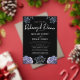 A bold and sophisticated Rehearsal Dinner Invitation featuring dramatic dusty blue and grey floral illustrations against a stark black background. The crisp white typography and classic layout set an elegant, moody tone. Perfect for a formal evening or a sophisticated wedding.