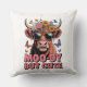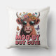 A adorable highland cow with flowers and butterflies. Typography of Moo-dy But Cute. Background color can be added.