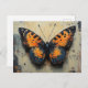 Digital art of a black and orange butterfly on a distressed tan wall.